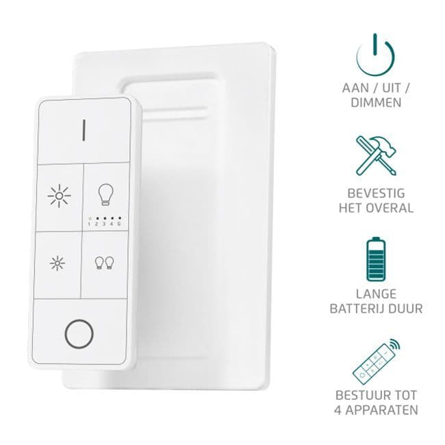 Switches & Remotes Home / The Lighting Catalogue / KlikAan KlikUit / Switches & Remotes / KlikAnKlikUit Remote Control With Wall Mount AYCT-202 70164 By Trust Smart Home KlikAnKlikUit Remote Control With Wall Mount AYCT-202 70164 By Trust Smart Home KlikAnKlikUit Remote Control With Wall Mount AYCT-202 70164 By Trust Smart Home £19.93 £23.92 (inc. VAT) Add to your Wish List Information Reviews AYCT-202 Remote control with wall mount Remote control on the wall for wireless control of one or more KlikAanKlikUit receivers < Control as many lights or devices as you want, in 4 separately controllable channels Control all linked lamps / devices at the same time with the smart group function Easy dimming with the dimming buttons Magnetic wall mount for easy wall mounting of the remote control Long battery life (battery included) Transmission range up to 30 meters Extra information Type AYCT-202 Article number 70164 EAN 8713439701647 Dimensions 92 x 35 x 11 mm remote control and 115 x 70 mm wall mount Nutrition 1x 3V lithium battery (CR2450) Package contents - Remote control with wall mount and supplied battery (CR2450) - Dutch user manual - Magnetic wall mount Scope Within Product line Start Line (433MHz) Edit Structure Control multiple groups of lamps ✅ Product type Transmitter Works with existing fixed switch Does not apply Transmission range 30 meters (indoors) 2-way status feedback * ❌ Number of channels 4 For operation of Lighting Functionality Dimming Customer reviews No reviews left yet Write a review Sort byMost RecentTop Rated No reviews have been left for this product, be the first to leave a review