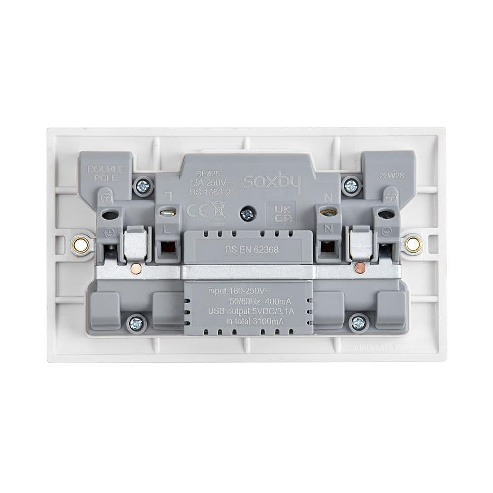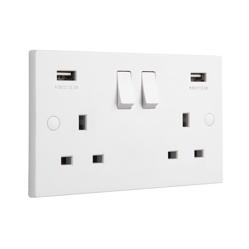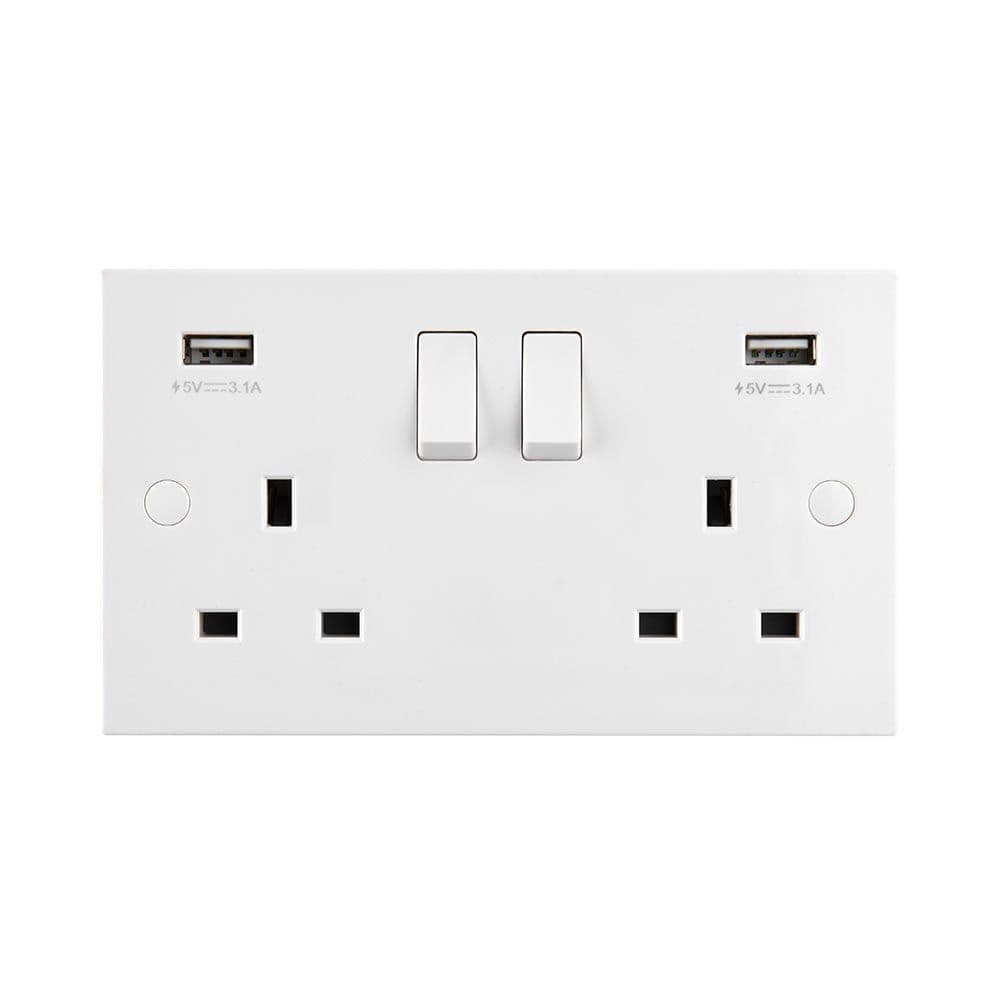 Square Edge 13A 2G DP Switched Socket with twin 5V USB